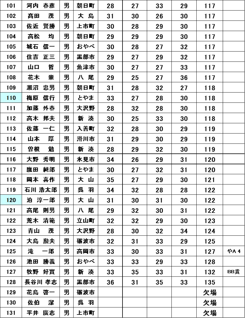 2025.県連選手権大会(東部地区)成績表(あさひヒスイ海岸PG場)