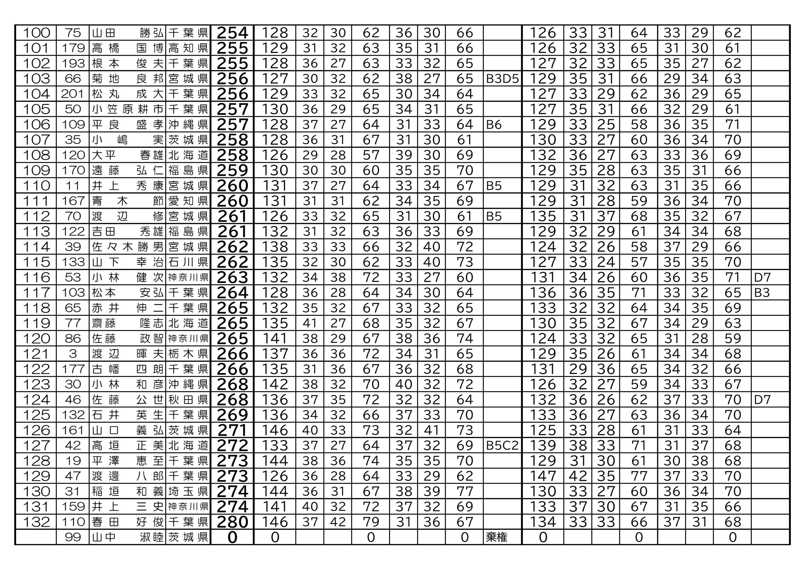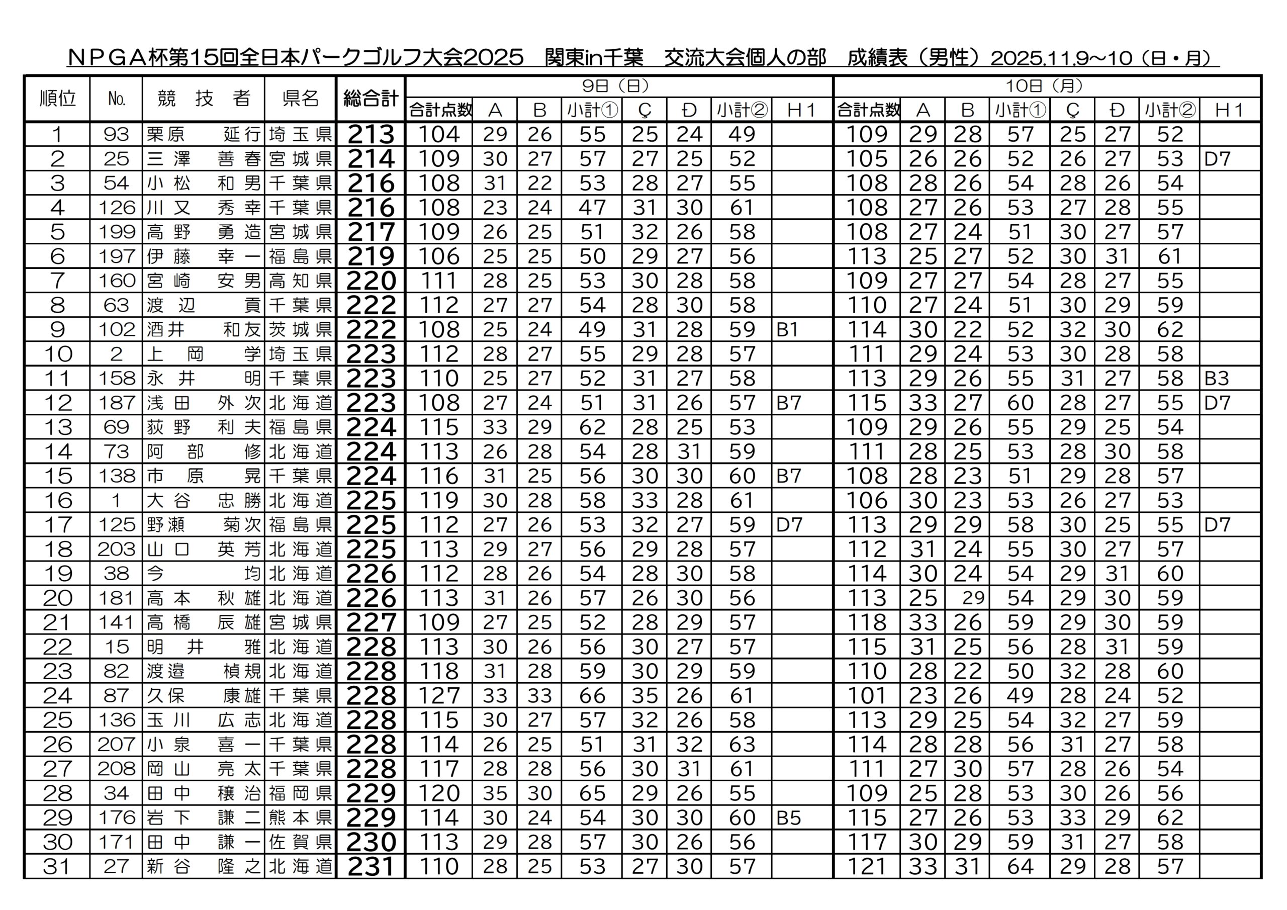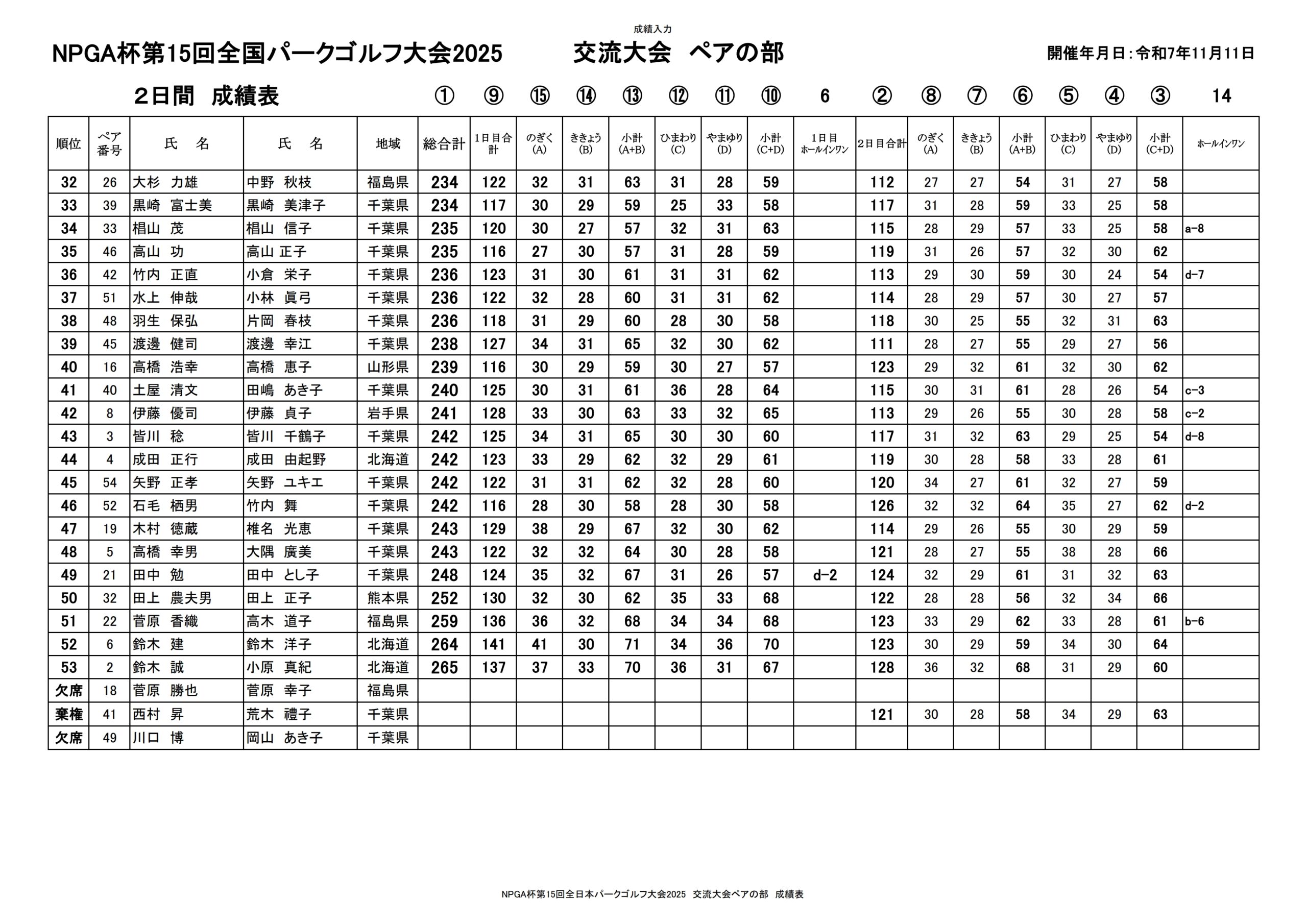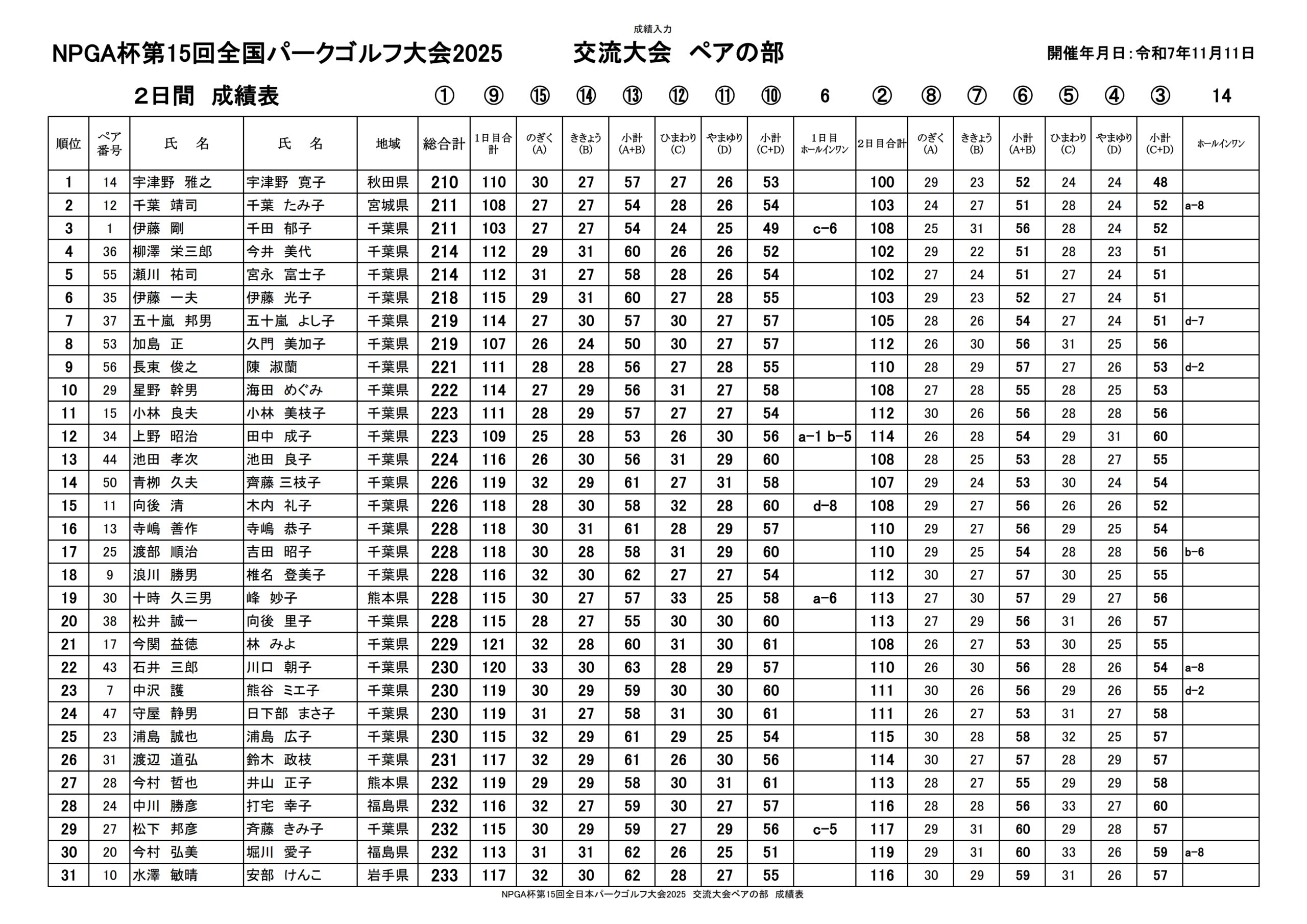 2025.第15回NPGA杯全日本PG大会 関東in千葉 個人の部成績表(11/9-11/10)