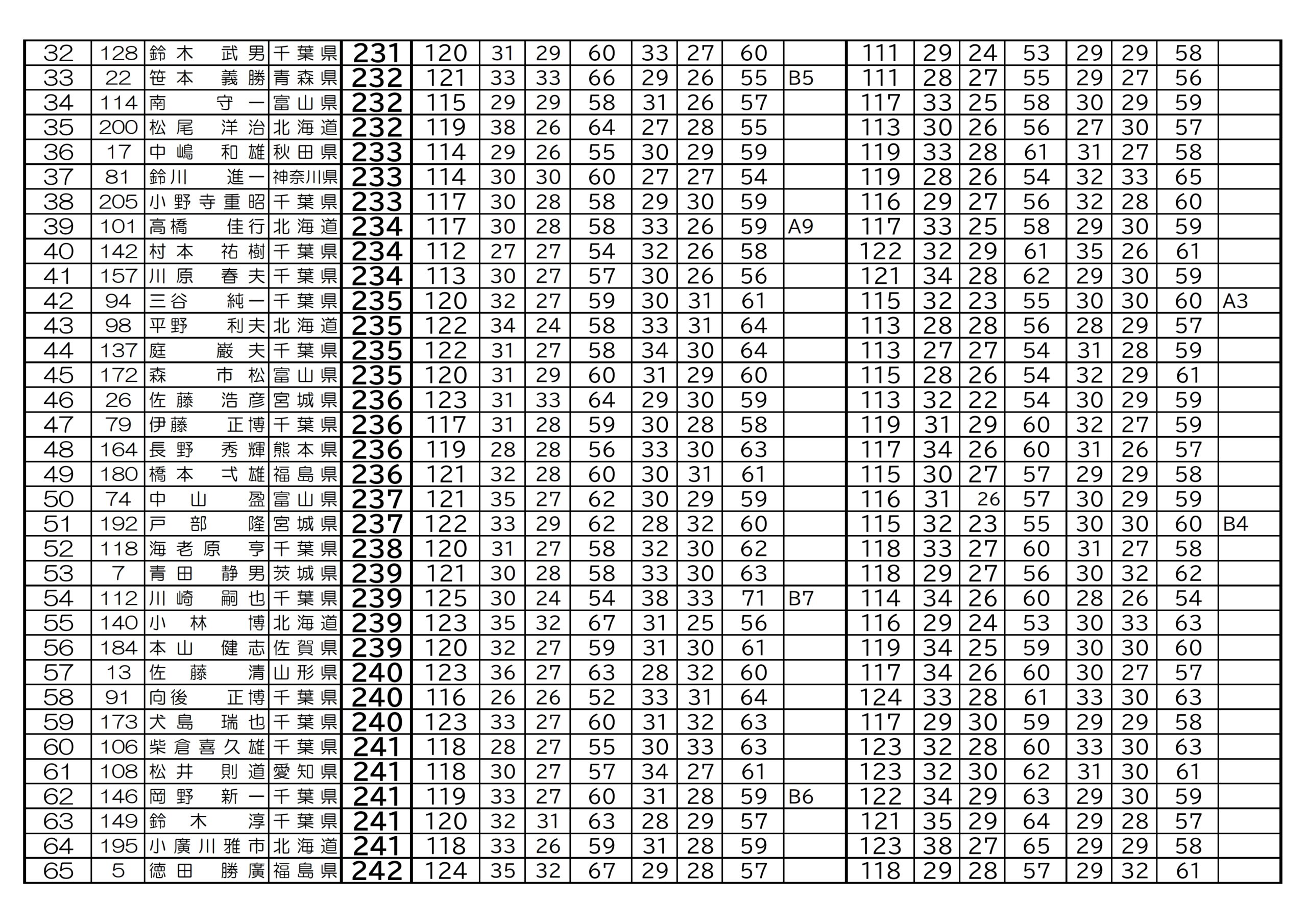 2025.第10回中部ブロック交流大会成績表男子(根上PG場・8/28)