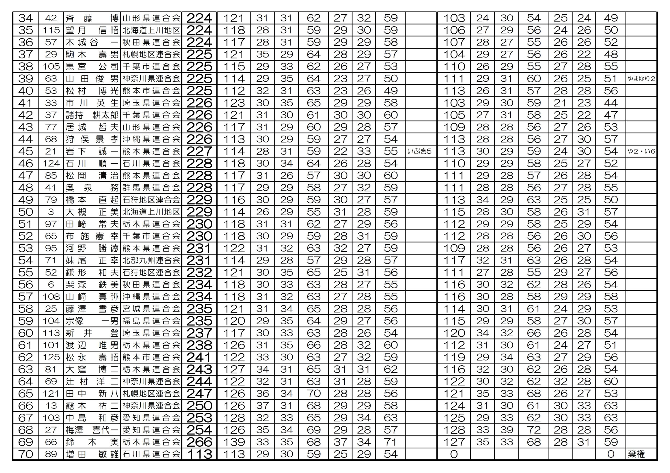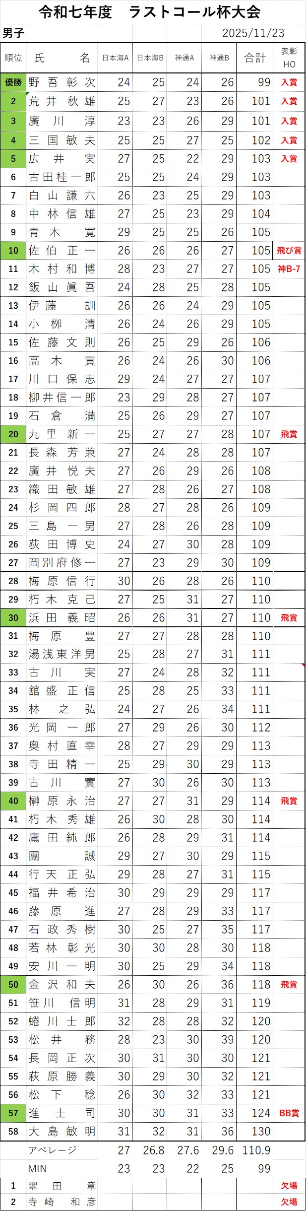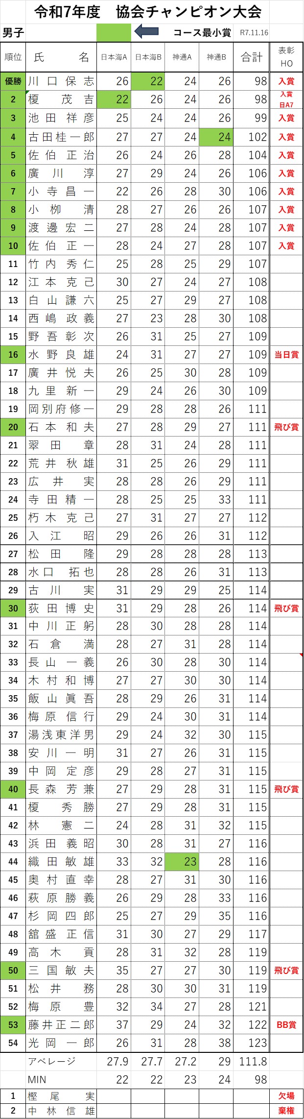2025.パークの日杯大会(旧 岸グリーン杯)成績表