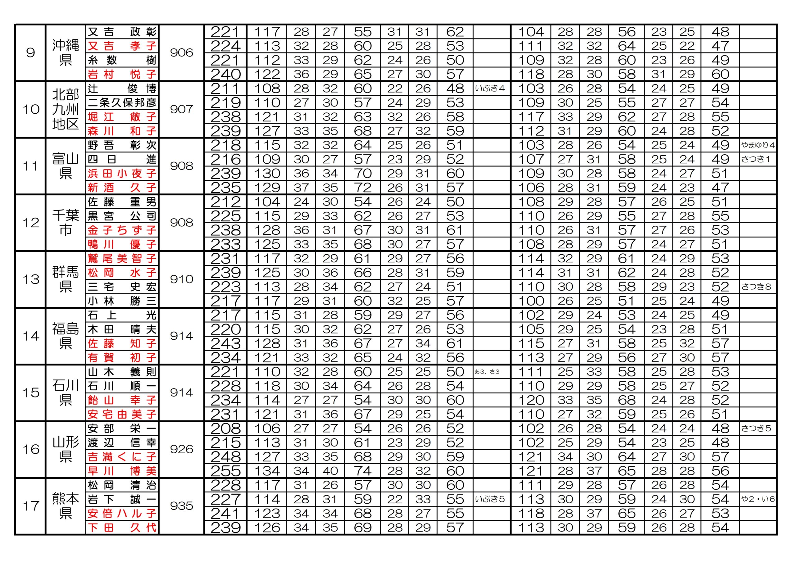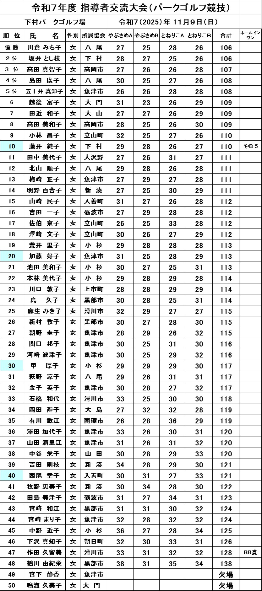 2025.県選手権大会(西部地区)成績表in射水市パークゴルフ南郷