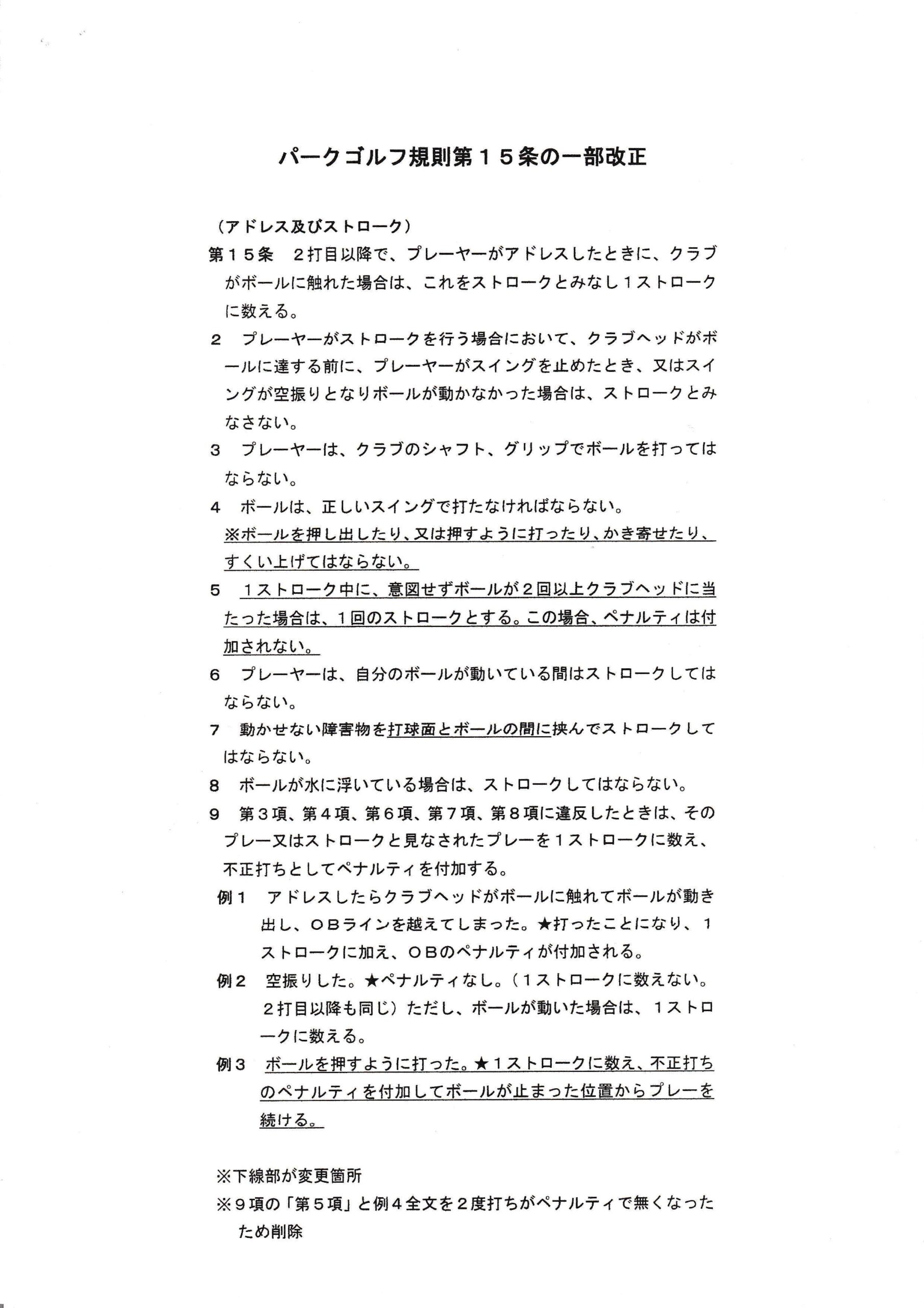 パークゴルフ規則一部改正(令和8年4月1日 施行) 公益社団法人 日本パークゴルフ協会