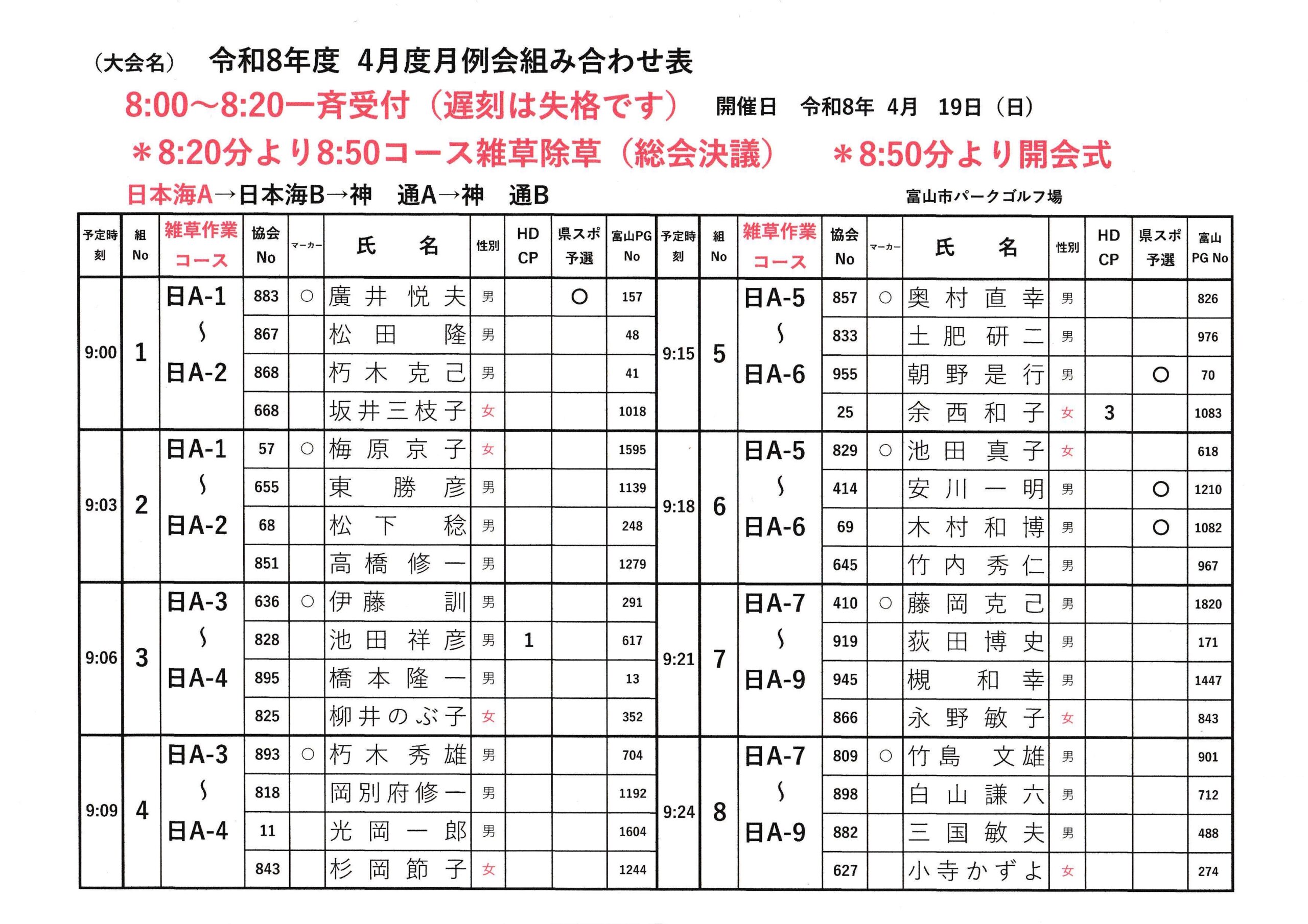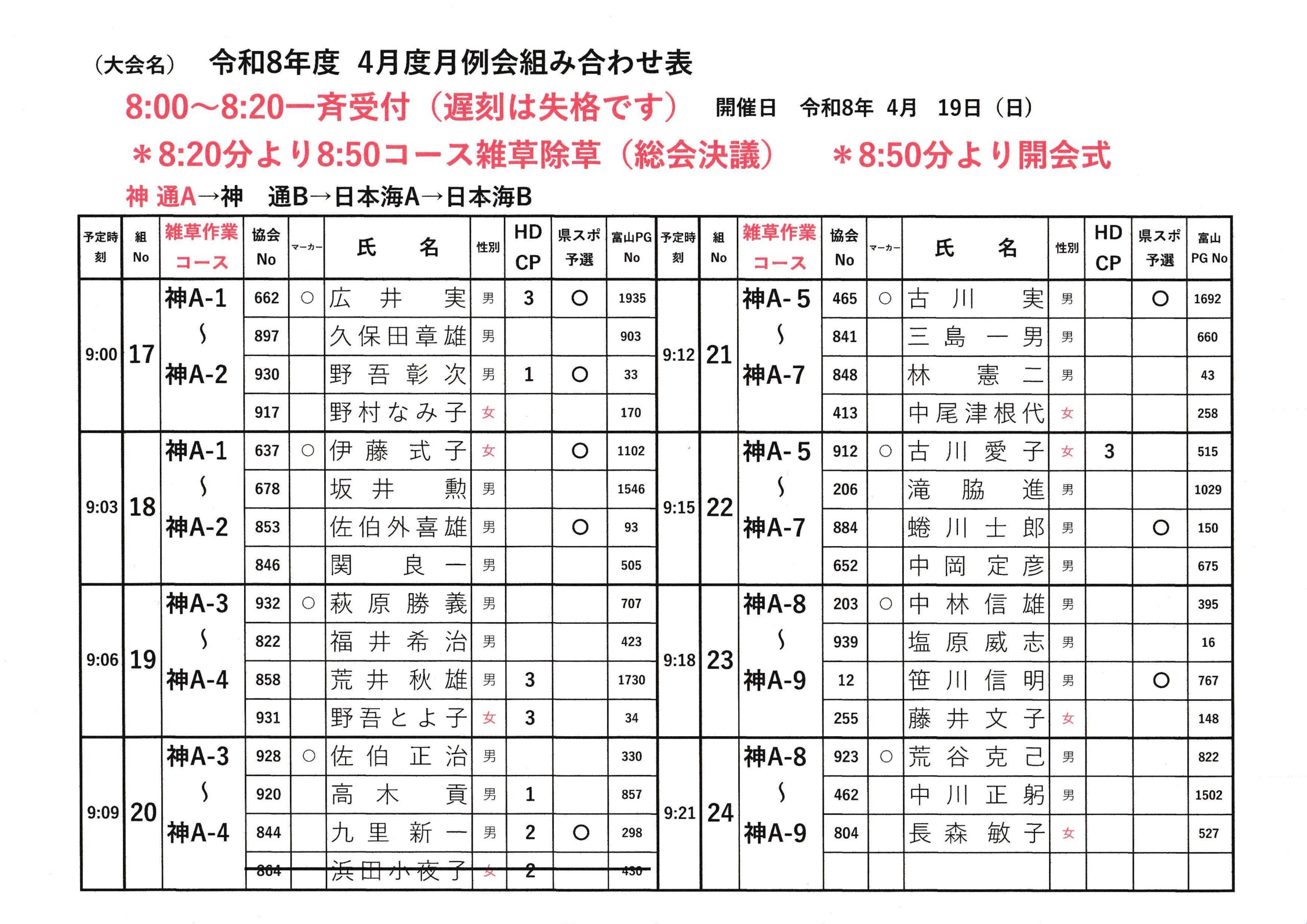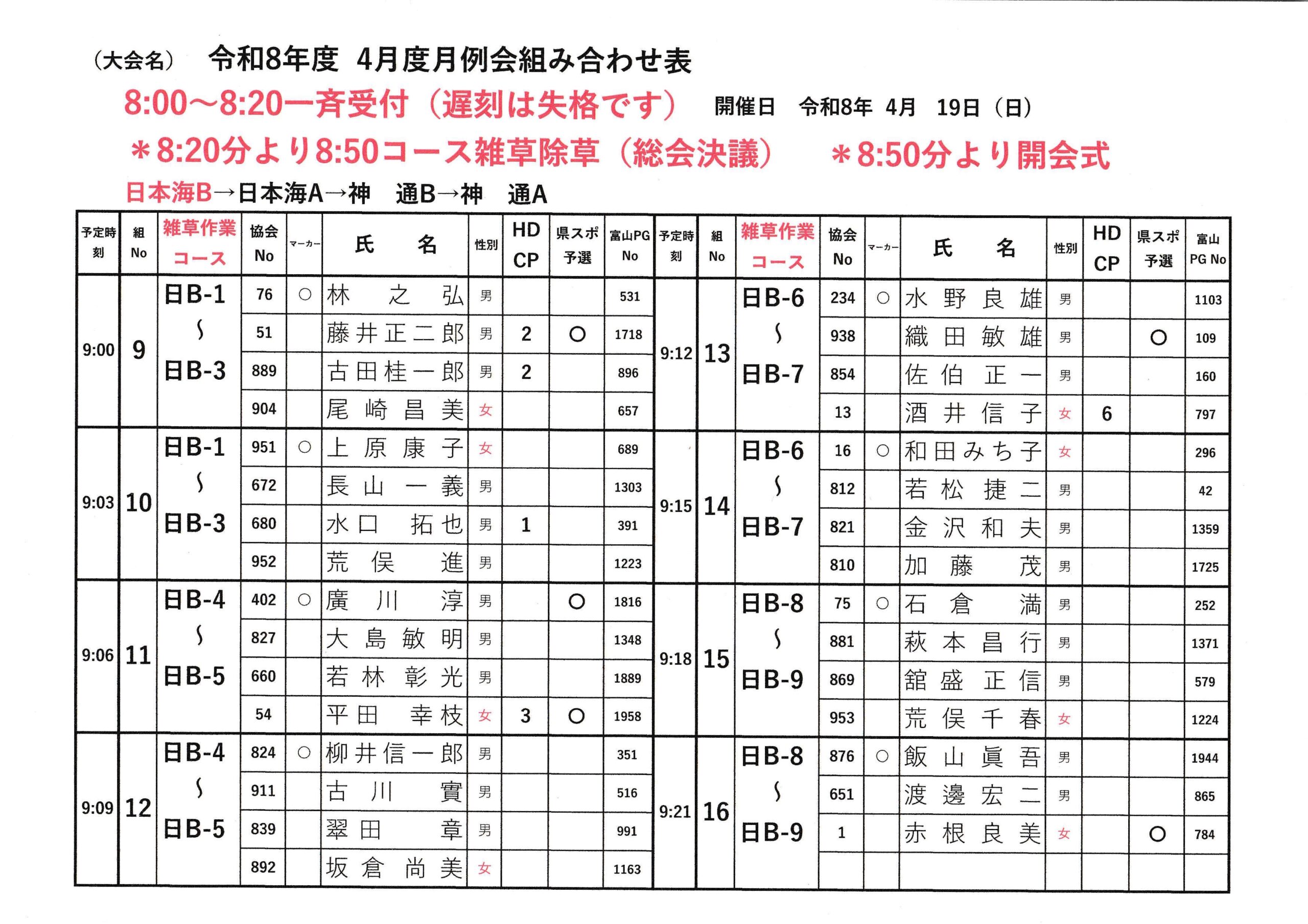 2026.4月度月例会組み合わせ表(県スポレク祭予選)