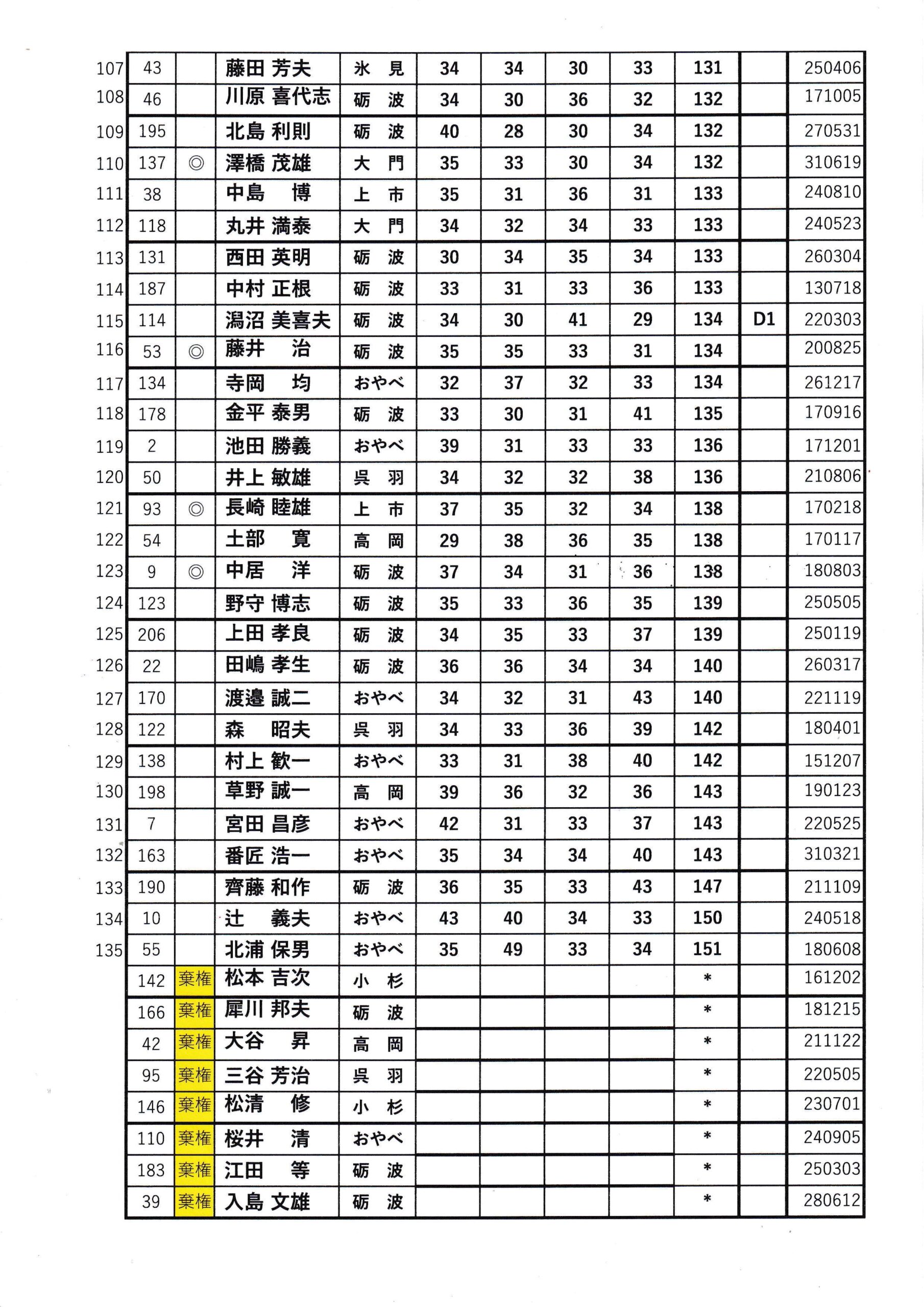 2025.県連選手権大会(東部地区)成績表(あさひヒスイ海岸PG場)