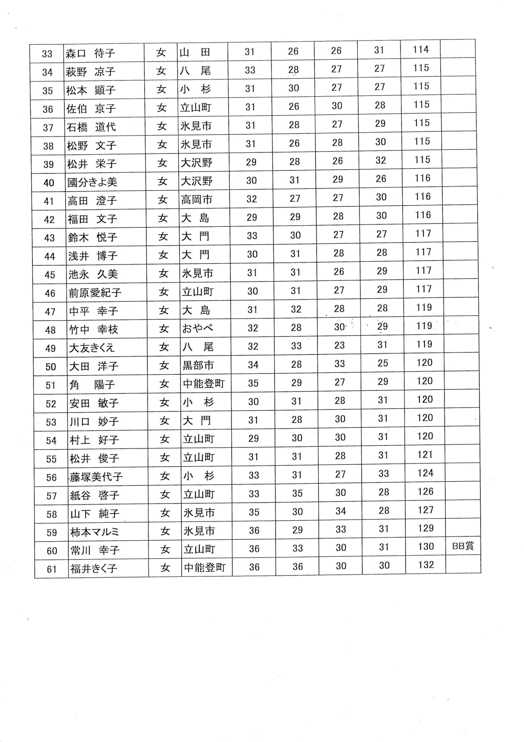 2025.第24回富山市スポレク祭PG大会成績表(10/19 婦中神通PG場)