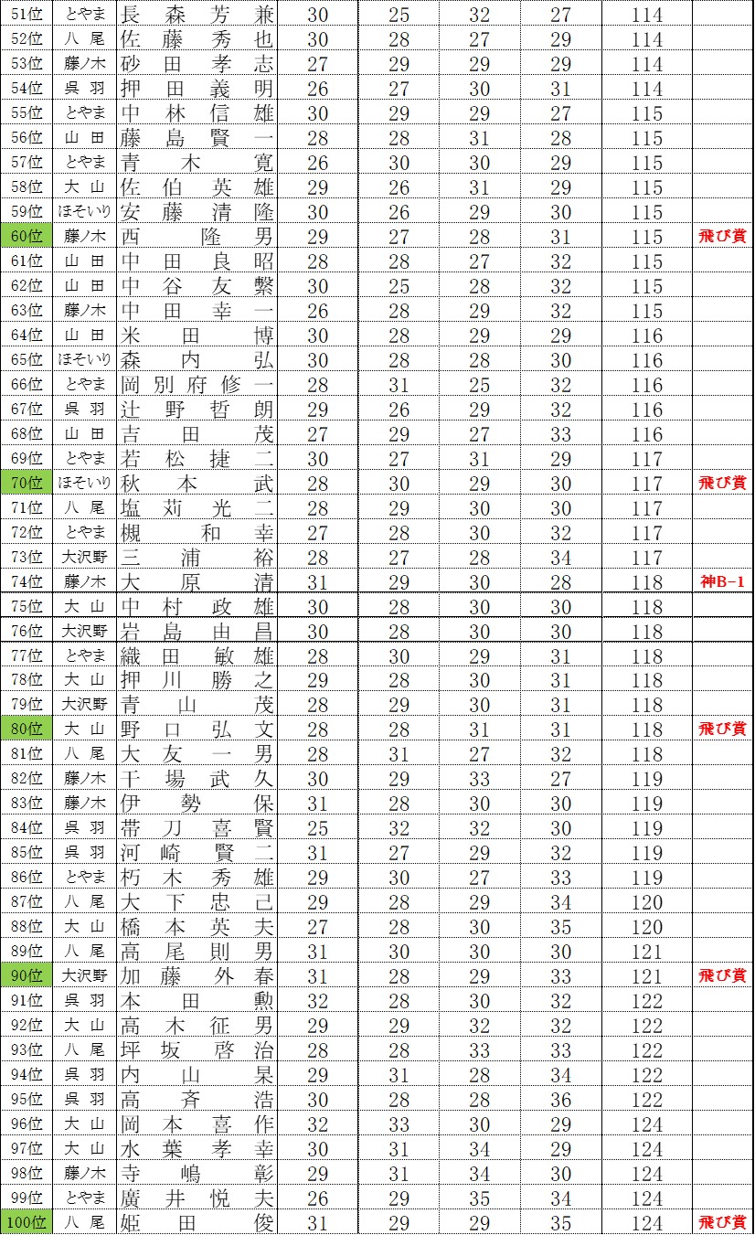 2025.第10回 庄川温泉郷杯成績表(9/11 砺波PG場)